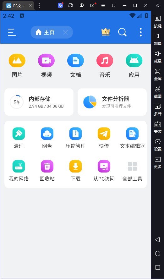 想在模拟器上管理各种文件,es文件管理器电脑版你必然不可错过。这是借助安卓模拟器运行在pc端的一个版本。它能够浏览、搜索、编辑、管理模拟器中的各种文件,支持多种文件格式,包括文档、图片、音频、视频等。此外,ES文件浏览器还支持FTP、HTTP、WebDAV等网络文件访问,让我们能够随时随地访问网络上的文件。如果你觉得自己使用的安卓模拟器乱糟糟的,不妨使用es文件管理器电脑版管理一番,能轻松提高您的效率!