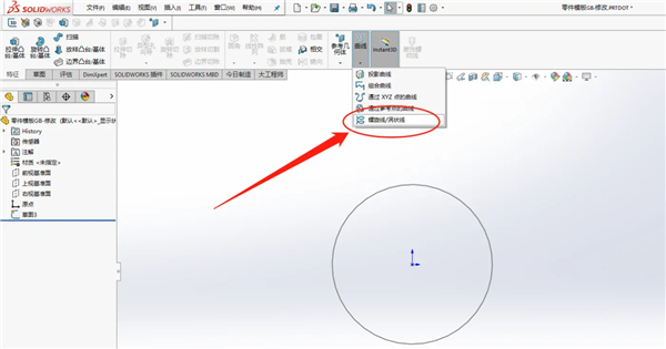 2、点击特征>曲线,选择【螺旋线/涡状线】,点击第一步中绘制的圆;