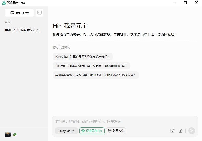 腾讯元宝电脑版是一款由腾讯开发的多功能智能Ai助手应用,它是依托于腾讯混元自研T1、DeepSeek R1等大模型,基于跨知识领域和自然语言理解能力的大模型AI产品!软件凭借其强大的AI能力,能在办公、学习、创作、生活等多领域为用户提供高效率与生活辅助服务。腾讯元宝pc版还具有卓越的中文理解、创作逻辑推理及可靠的任务执行能力,它可借助模型和搜索能力精准解答用户疑问,让其轻松获取信息!