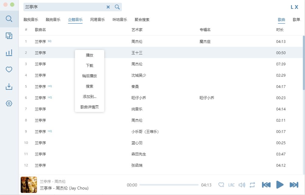 洛雪音乐助手也叫LX Music,这是一款能够免费听歌的音乐播放软件,涵盖了主流平台的使用体验,有Windows、MacOS、Linux、Android等多个版本。洛雪音乐电脑版页面干净整洁,支持自定义颜色,能播放无损音乐,无弹窗无广告,是一款难得一见的良心软件。洛雪音乐助手为了照顾用户体验,从安装到使用,全是傻瓜式一键操作,并且拥有海量的音频曲库,只要你能搜到,那就能够直接免费听歌、下载,最大程度保证了用户的使用舒适度。其次,洛雪音乐助手对于功能性也是遥遥领先,不仅内置了随系统时间更换皮肤、更换字体、切换启动动画,还支持自动化翻译粤语、英文歌曲,并支持投放出桌面歌词、调整可视化桌面歌词透明度等进阶功能。除此之外,像是热搜排行榜、网易云优秀歌单排行也是一应俱全,帮助你最快速的找到你想要的歌曲;当然,由于其优秀的搜索引擎,基本上你搜索任意歌曲都能找到。
