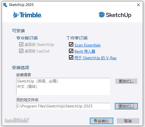 默认安装目录【c:\program files\sketchup\sketchup 2025】