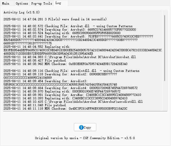 9、如下图所示,当出现这些代码代表激活完成,可以免费使用Adobe Acrobat Pro DC 2025。