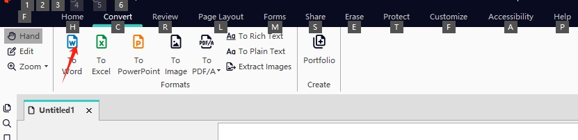 通过选择“主页”或“转换”选项卡,然后单击“ Word”以将其转换为Word。