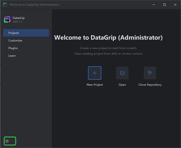 1、运行JetBrains DataGrip软件,点击左下角设置标识。