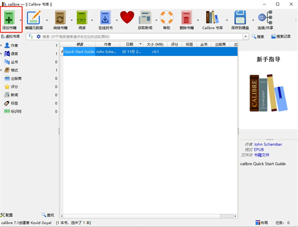 1、首先打开calibre软件,需要转换的书目不在列表的可以点击界面的添加书籍选项,将需要的书籍添加到列表中。将需要的书籍添加进来后开始进行下一步操作。
