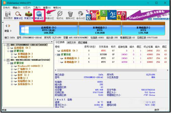 2、我们找到需要分区的硬盘以后,点击工具栏中的【快速分区】;