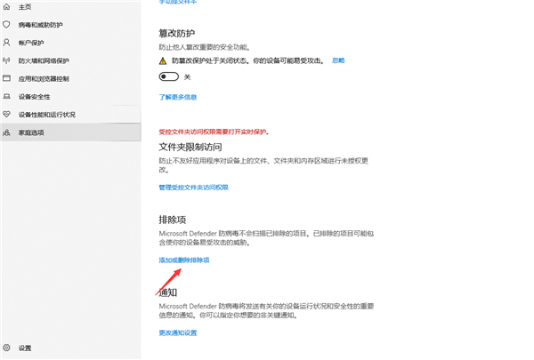 点击添加排除项(添加或删除要从 Microsoft Defender 防病毒扫描中排除的项目)如此设置以后,病毒防护功能就不会扫描排除项里的内容,也就不会误删文件