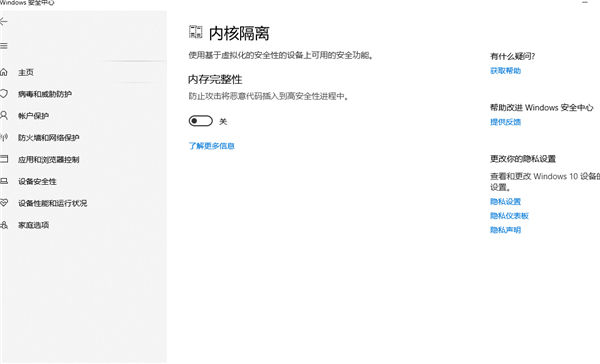 然后继续点击左侧 → 设备安全性 → 内核隔离详细信息 → 所有通通关掉下拉到底全部关掉【至此Windows安全中心所有设置完成】
