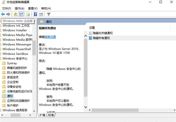 双击“隐藏所有通知”选择启用
