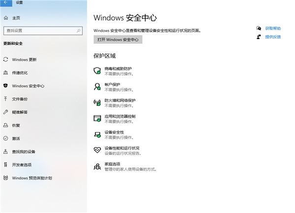 打开Windows设置 → 点击左侧的“更新和安全”→ 点击Windows安全中心进入