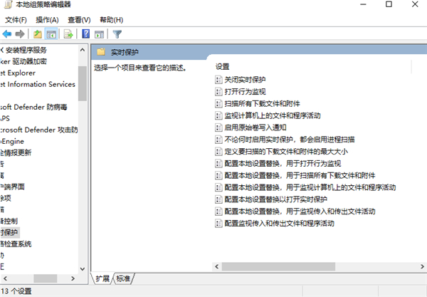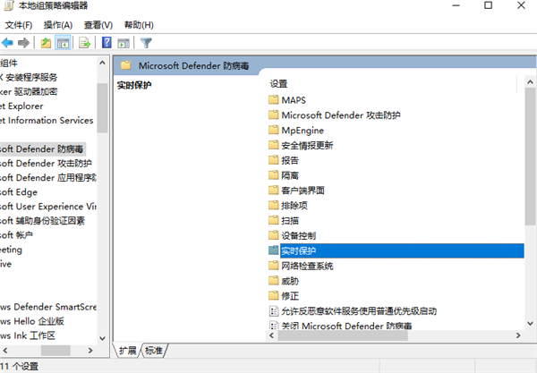 接着点击“管理模板/Windows组件/Microsoft Defender 防病毒/实时保护”进行以下三项操作