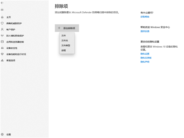 排除项(Microsoft Defender 防病毒不会扫描已排除的项目。)点击添加或删除排除项